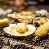 Next up was Hozenji Suigyo no Iori, a quaint, dimly lit restaurant specializing in grilled seafood (we were clued in by the rouge-colored fish sculptures hanging overhead) that you cook yourself over an open flame. Chunks of juicy abalone, scallops, shrimp, and octopus were presented to us on trays with tongs which we wielded to sizzle our seafood morsels over the fire. A few drams of sake down and we were ready to jaunt over to our final destination for the bar-hop – Torame Yokocho.